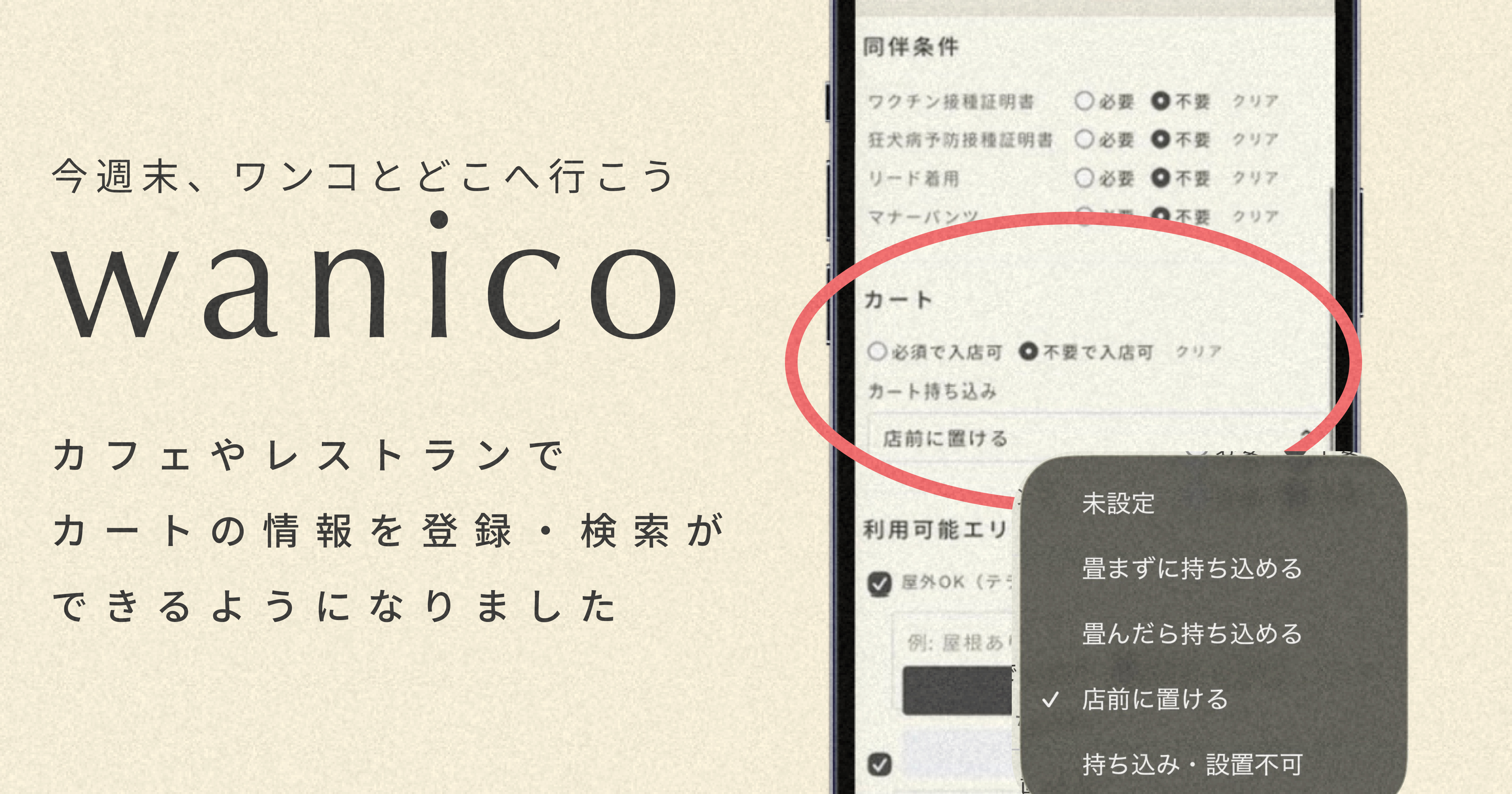 カフェ・レストランでカートの持ち込みに関する情報を登録・検索ができるようになりました!